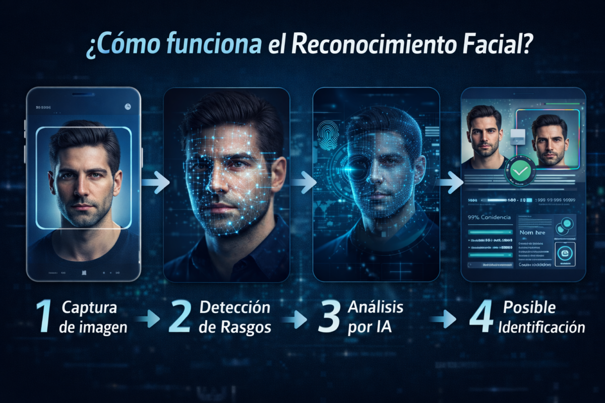 El reconocimiento facial es una tecnología que permite comparar un rostro en una imagen con bases de datos disponibles y patrones de coincidencia, logrando posibles identificaciones y resultados de alta precisión cuando la fotografía es adecuada.